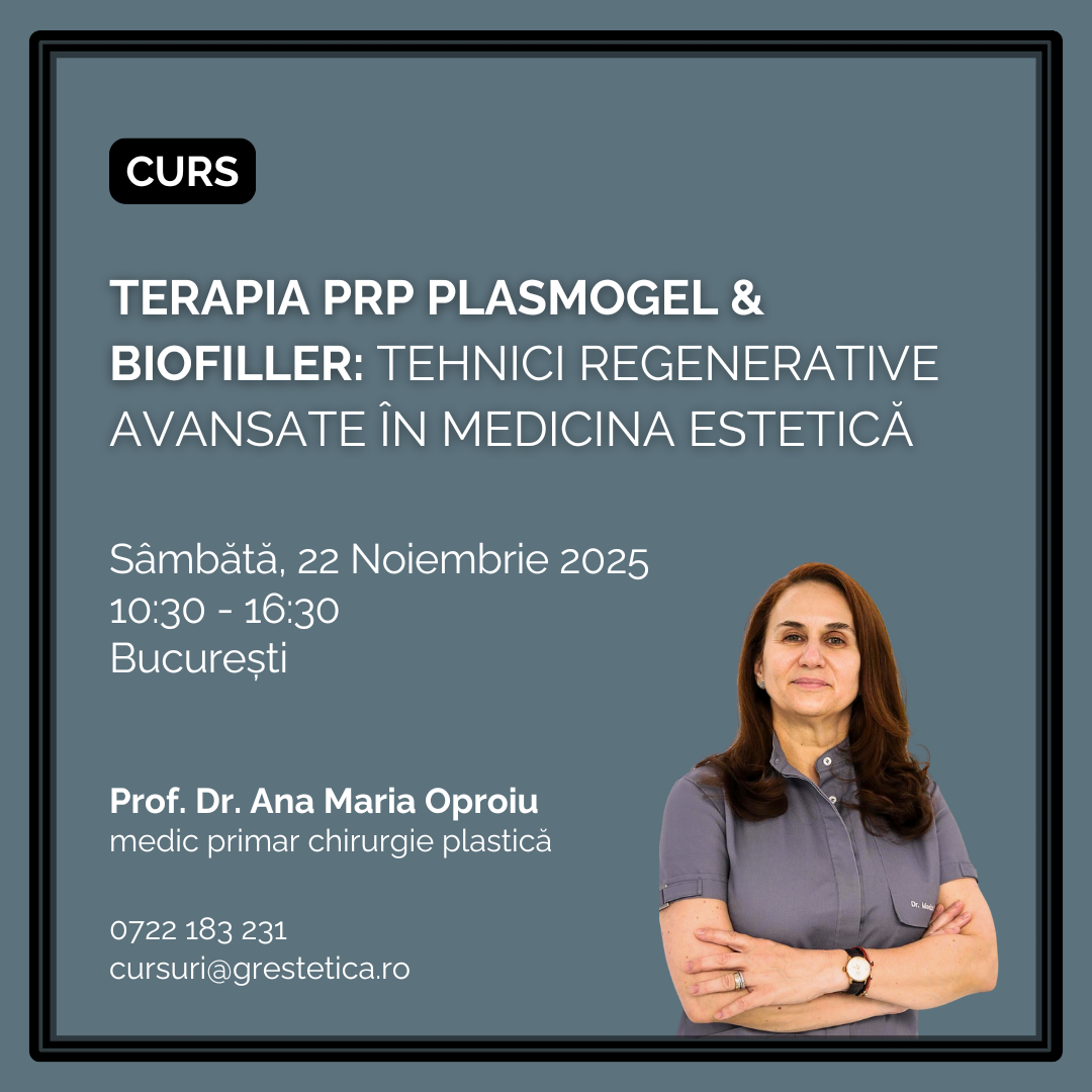 Descoperă cele mai eficiente tehnici regenerative autologe utilizate în rejuvenarea facială și corporală. Sub îndrumarea Prof. Dr. Ana Maria Oproiu, vei învăța pas cu pas cum să aplici terapia PRP Plasmogel și Biofiller în practica estetică, de la pregătirea corectă a produsului până la tehnicile avansate de injectare.